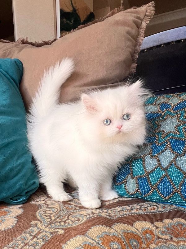 At Persiankittenpals, we are excited to offer white solid Persian Kittens with blue eyes.. Join my waitlist for upcoming litters due in April 2025 of white solid kittens with blue eyes. We have one female white available now.